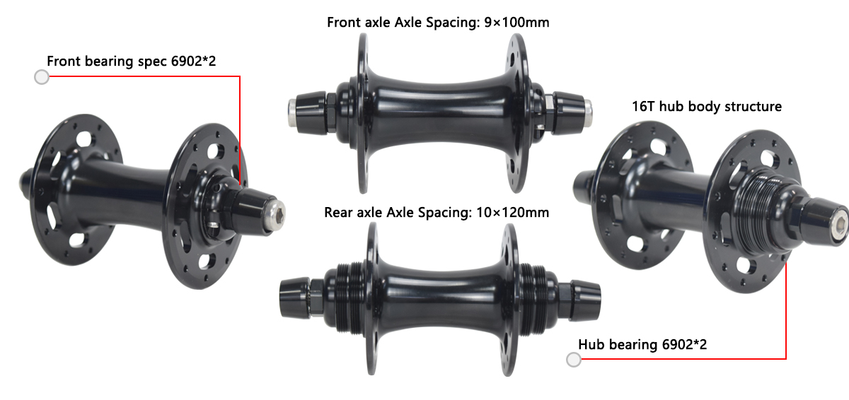 • Premium Bearings: Front and rear hubs are equipped with 6902×2 bearings, ensuring smooth, friction-free rotation and long-lasting reliability.