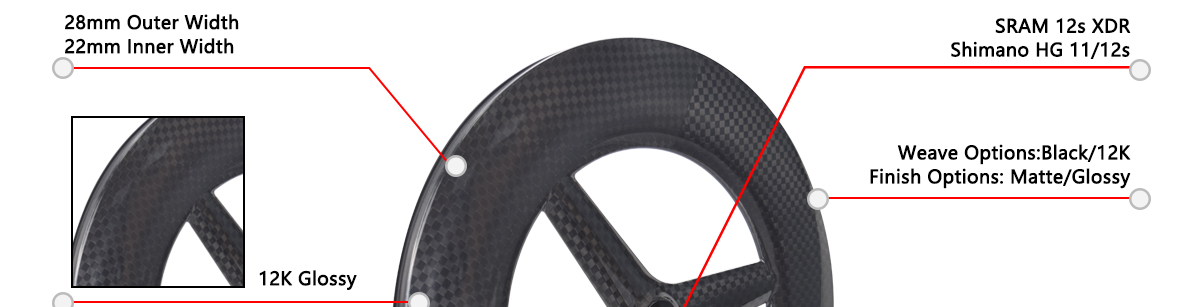 12K Carbon 3-Spoke 700C Road WheelPago :